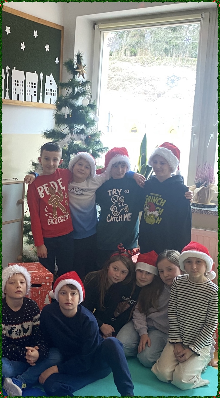 Po powrocie do szkoły na najmłodszych czekała kolejna niespodzianka. Kiedy tylko weszli do swoich sal, ich wzrok od razu przyciągnęła pięknie przystrojona choinka, pod którą… ukryły się prezenty! Okazało się, że Święty Mikołaj nie zapomniał o naszych dzielnych uczniach i zostawił dla każdego drobny upominek. Otwieraniu paczek towarzyszyła ogromna radość, ciekawość oraz mnóstwo dziecięcych uśmiechów.