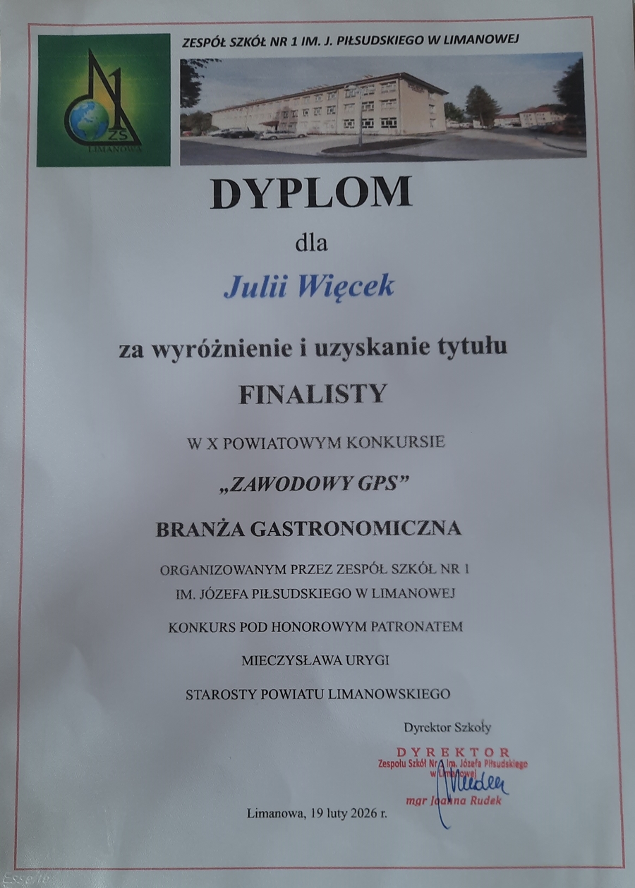 W gronie finalistów znalazły się Julia Więcek oraz Julia Florek z klasy VIII, które zmierzyły się z pytaniami z zakresu branży gastronomicznej.